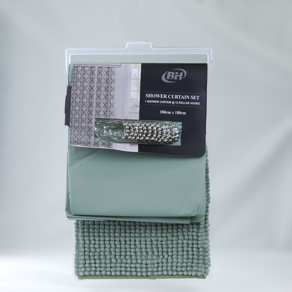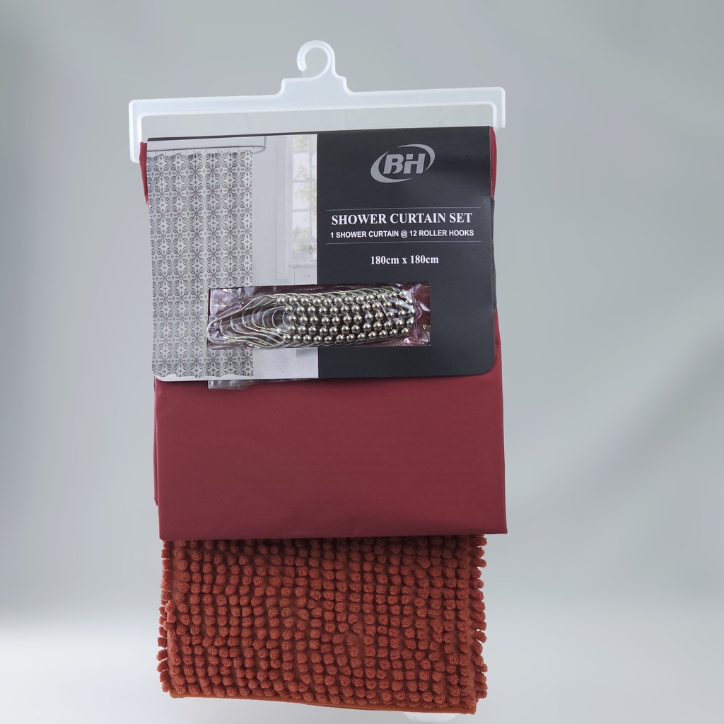 JUEGO CORTINA P/BAÑO EVA 180*180CM Y ALFOMBRA ANTIDESLIZANTE 40*60CM POLYESTER